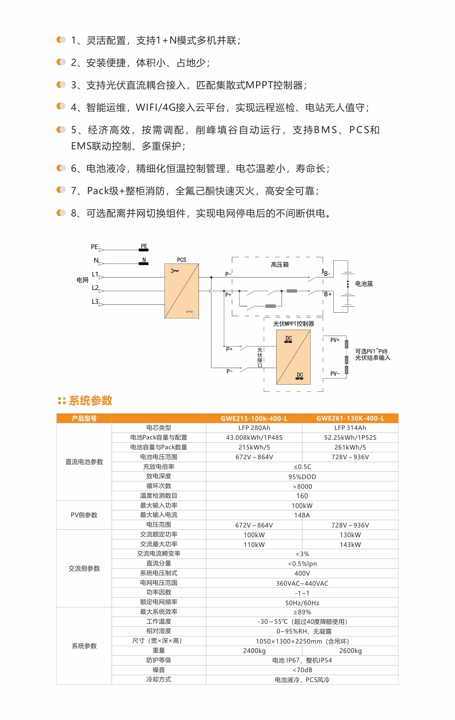 > 100kW/215kWh 130kW/261kWh光储一体机(并网型)